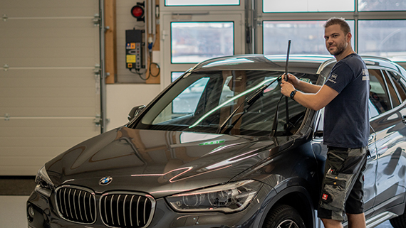 - Windschutzscheibe und Wischerblätter auf Beschädigung prüfen