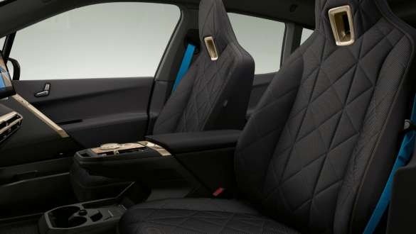 Das Interieurdesign Suite Amido verwendet ein exklusives olivenblattgegerbtes Naturleder auf der Instrumententafel, Türverkleidungen, Mittelkonsole und Sitzen, um ein modernes Ambiente des nachhaltigen Luxus zu schaffen. Die Polster sind üppig und komfortabel durch die aufwendigen Steppnähte. Dazu passen die Goldbronze-Akzentelemente auch in der Kopfstütze.