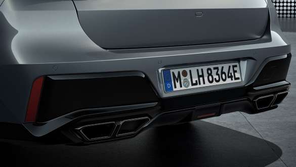Die L-förmigen Leuchten intensivieren das Gefühl selbstbewusster Breite. Die Endrohre in 4-Rohr-Optik erschaffen zudem ein sportliches Auftreten.