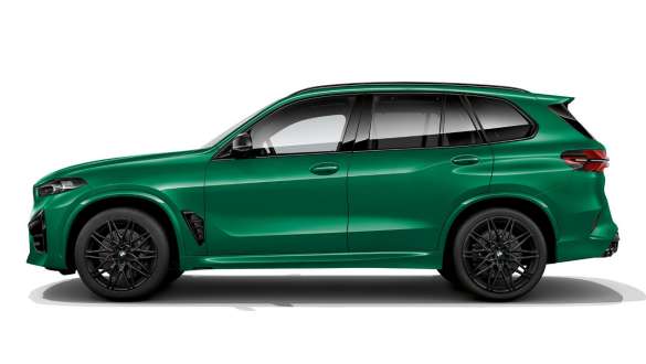Details wie die schwarzen M Kieme, glänzende Spiegelkappen und das X5 M Logo verleihen der Seitenansicht eine sportliche Note.